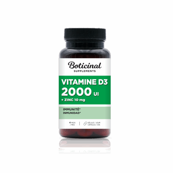 IMMUNITE – Vitamine D3 2000 UI et Zinc, 120 gélules végétales