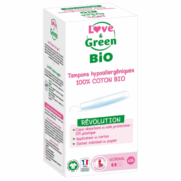 Tampons Hypoallergéniques 100% Coton Bio avec Applicateur – Normal, 16 Unités, Tampons Hypoallergéniques 100% Coton Bio avec Applicateur – Normal, 16 Unités